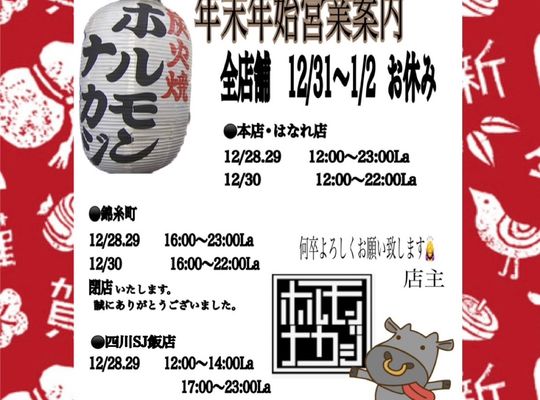 2025/12/16女将のつぶやき No,41 「焼肉ホルモンナカジTOKYO KINSHICHO」をご愛顧いただき、誠にありがとうございます。 当店は2025年12月30日の営業をもちまして閉店... -